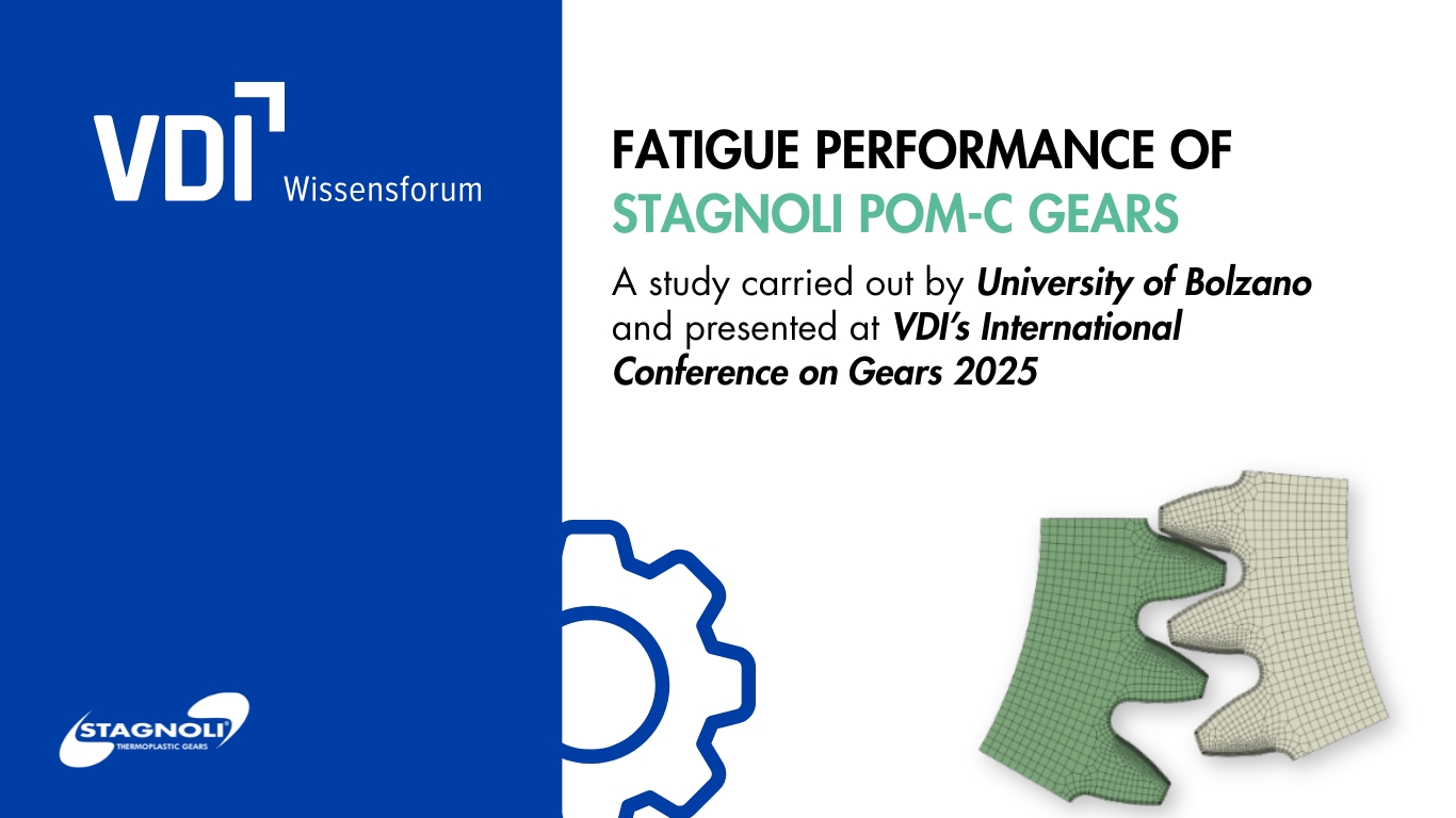 During the VDI Conference 2025, a scientific paper developed by the Free University of Bozen-Bolzano will be presented, based on an experimental study of POM-C gears manufactured and supplied by Stagnoli. The study, conducted on a closed-loop test rig, enabled the characterization of the fatigue behavior of polymer gears under different load, speed, and temperature conditions.