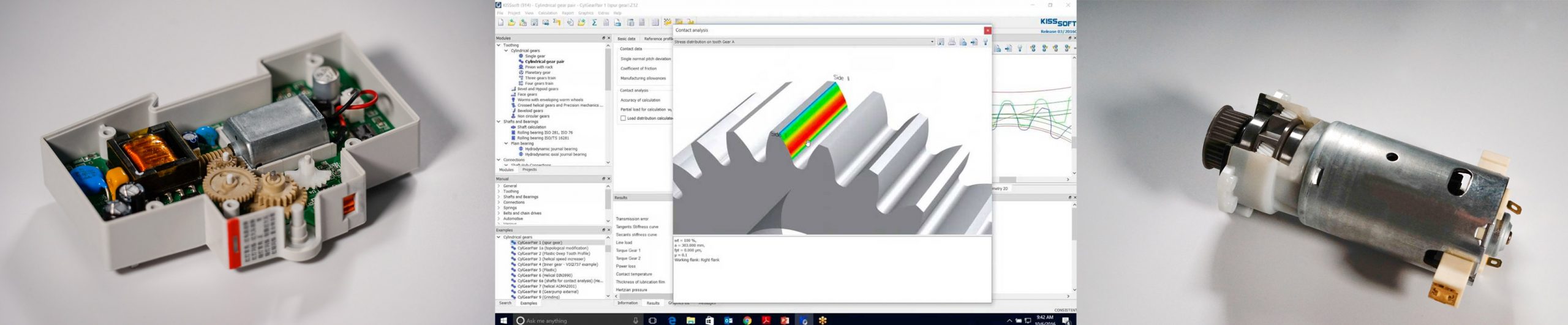Une fois établies les lignes de base du projet, le moulage des engrenages se fait grâce à un logiciel en CAD 3D qui permet de suivre au mieux toutes les différentes caractéristiques, tandis que pour les calculs et les modèles 3D des développantes nous nous en remettons au logiciel KISSsoft, reconnu au niveau international comme le meilleur en matière d’engrenages. Ce programme rend en effet disponible, en plus de tous les principaux calculs géométriques, de nombreuses fonctions d’optimisation parmi lesquelles le rendement de la transmission, les données importantes sur le recouvrement, l’analyse du contact et les simulations sur la dissipation de chaleur.