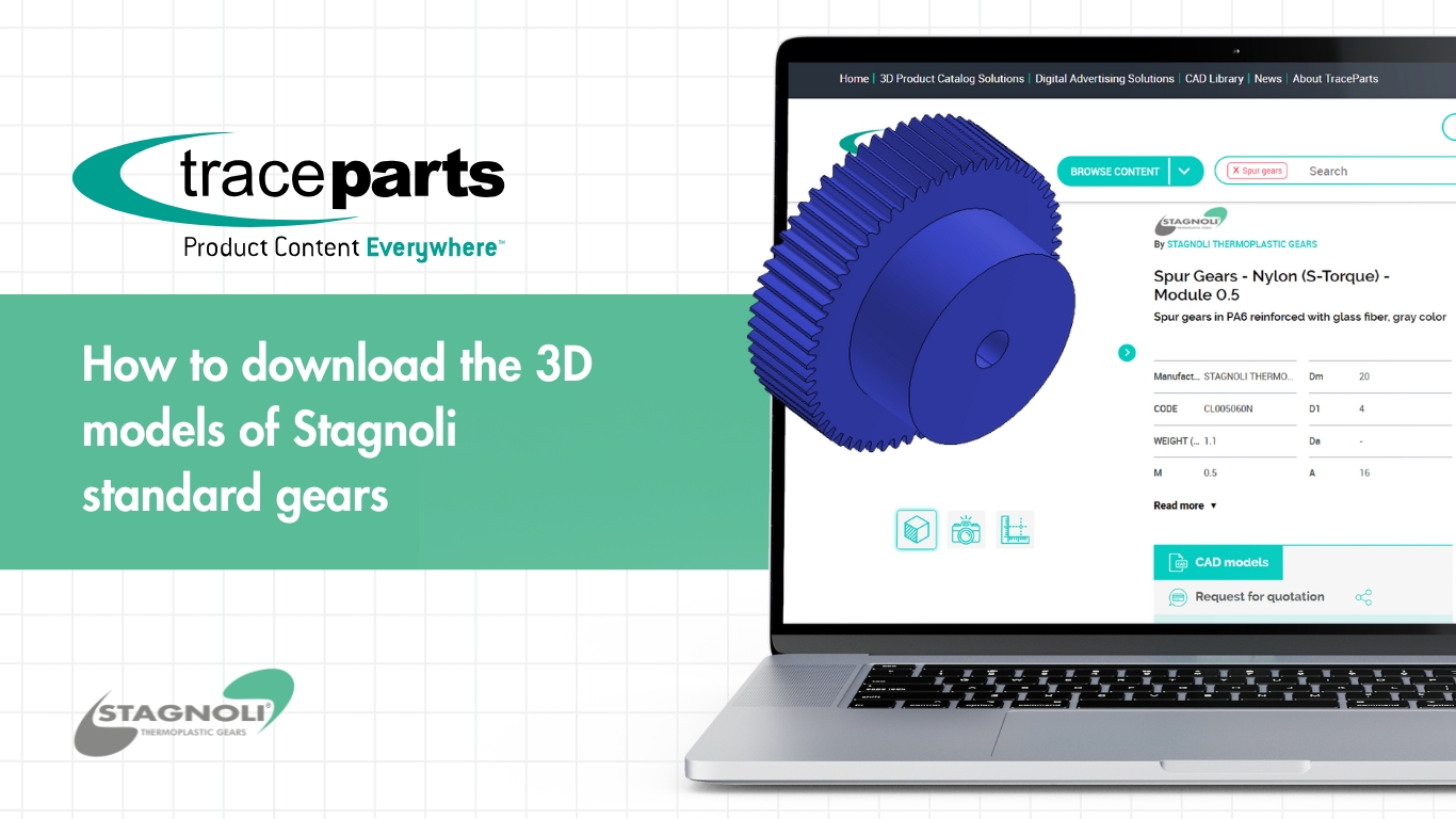 Depuis le mois de mars de cette année, les dessins techniques des engrenages Stagnoli sont officiellement disponibles sur TraceParts, l'une des plus grandes plateformes internationales dédiées à la fourniture de modèles 3D, de catalogues numériques et de composants pour les concepteurs et les ingénieurs. Une étape importante pour rendre l'accès à nos produits encore plus simple et plus immédiat, y compris par le téléchargement de dessins techniques d'engrenages conçus pour ceux qui travaillent chaque jour avec des solutions mécaniques de précision.