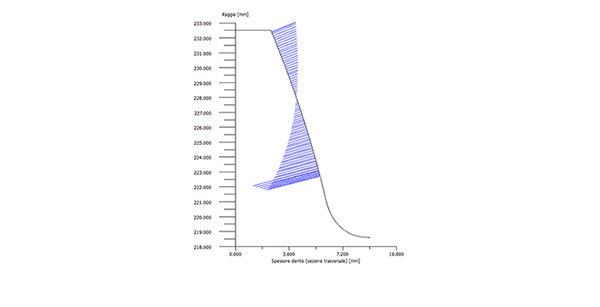 Des analyses de résistance mécanique ont été menées dans ce projet en suivant les lignes directrices de la norme VDI2736. Grâce au logiciel KissSoft nous avons ensuite optimisé la denture des engrenages avec des corrections et des astuces en mesure d’en augmenter la résistance à l'usure et pour le pied de dent, nous avons mené une analyse de contact pour évaluer les pertes de puissance et l'accumulation de chaleur sur le flanc de la dent.